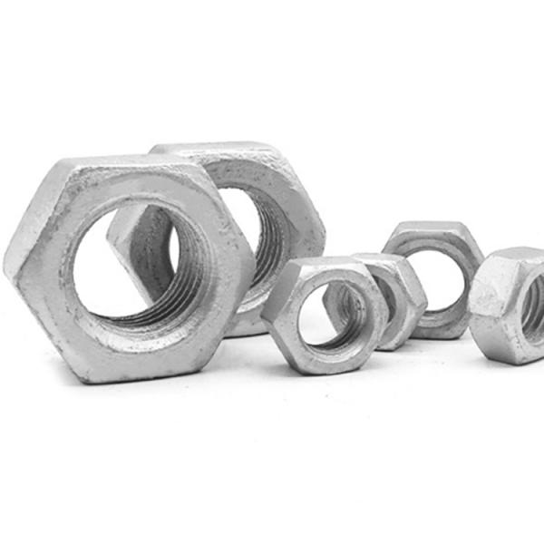 Ordinary hexagonal nuts are enlarged by thread (usually 50--80um) and then treated by hot-dip galvanizing to become hot-dip galvanized nuts. Power line hardware generally uses hot-dip galvanized nuts with strength grades of 4, 6, and 8 according to specific engineering projects. Hot-dip galvanized nuts are generally made of Q235B, 35K, 45#, 35CrMo, etc. Different grades of products are selected according to project requirements. Generally, high-grade nut products such as 35K, 45#, 35CrMo are preferred for UHV lines.